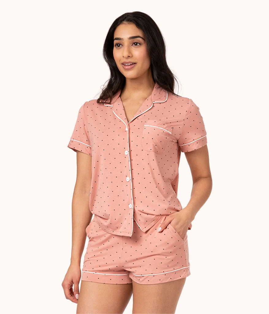 Things are heating up 😉 Get in on the same softest ever fabric, elevated style, and total comfort of our All-Day Lounge Shirt – now in a breezy short sleeve and stylish Dot Print!