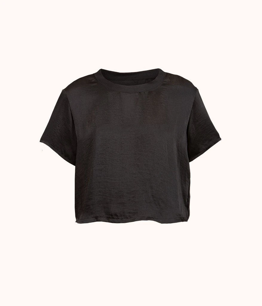 Feel more luxe, look more polished, experience more comfort! Meet the lounge tee offering lightweight, cool-handed feels with a boxy fit — perfect for lounging or dreaming. Fabric features a crinkle texture and a bit of sheen for a luxurious look, plus a ribbed crew neckline for added detail.