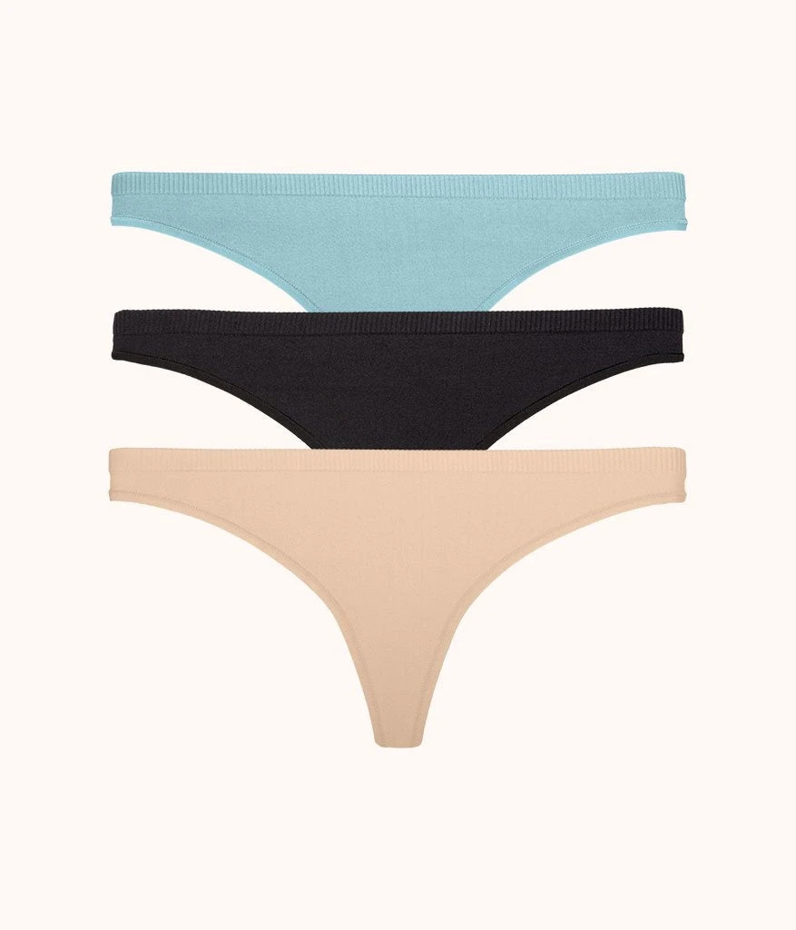 The Seamless Thong Bundle: Jet Black/Toasted Almond/Sky Blue